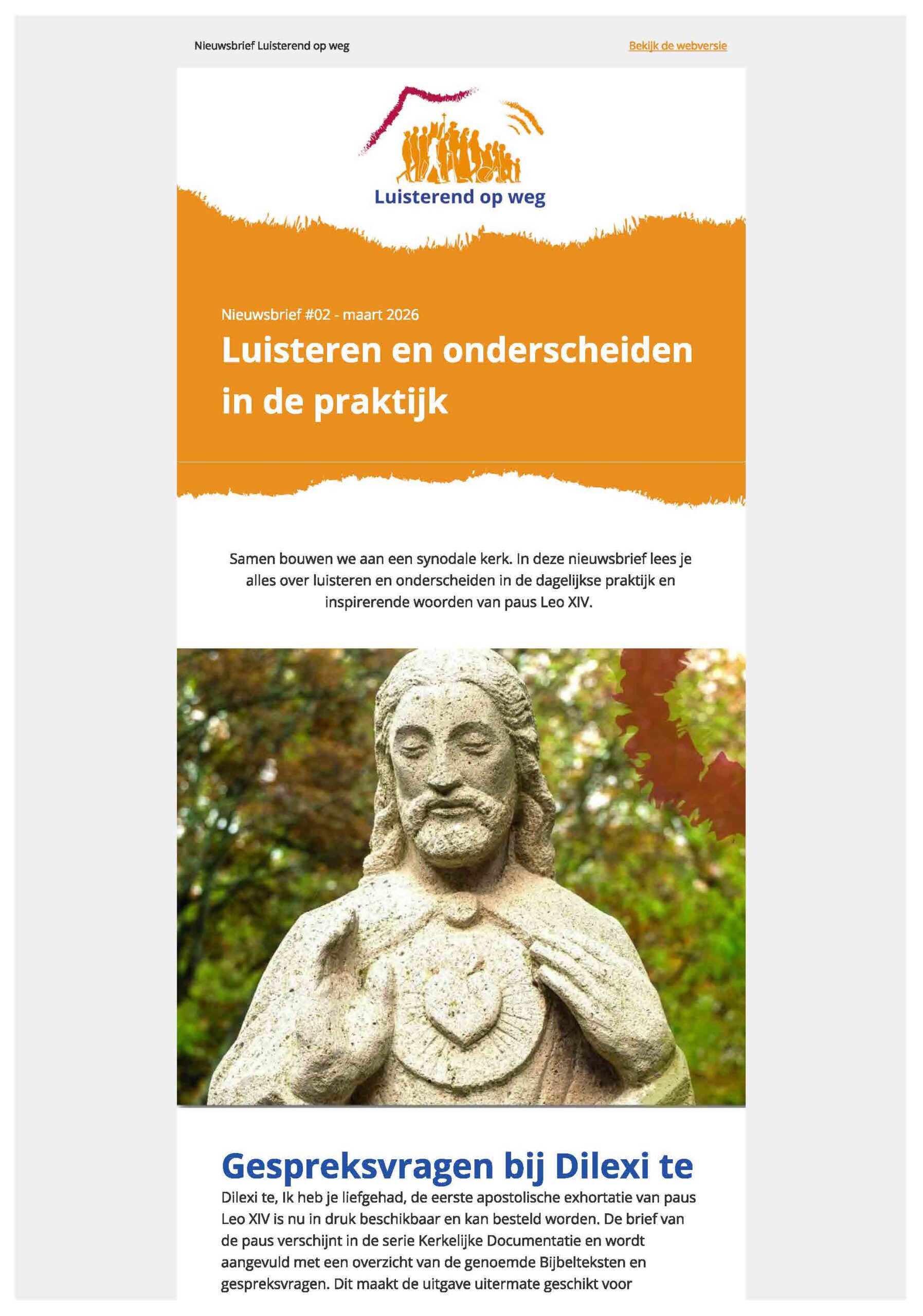Samen bouwen we aan een synodale kerk. In deze nieuwsbrief lees je alles over luisteren en onderscheiden in de dagelijkse praktijk en inspirerende woorden van paus Leo XIV.